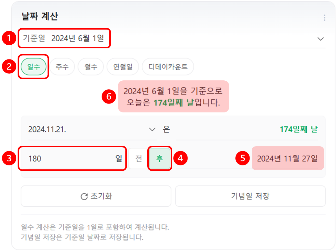 일수 계산은 기준일을 1일로 포함하여 계산돼요.